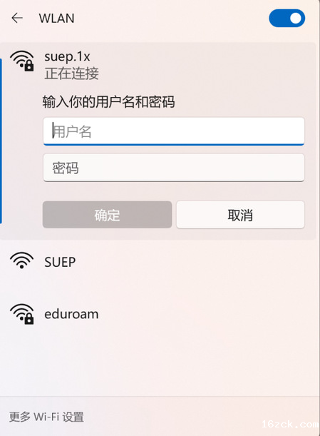 11)在无线网络列表中选择“suep.1x”,点击“连接”,首次连接会弹出登录框,输入您的无线网络账号信息,点击“确定”,等待显示“已连接”,即可开始使用无线网络。